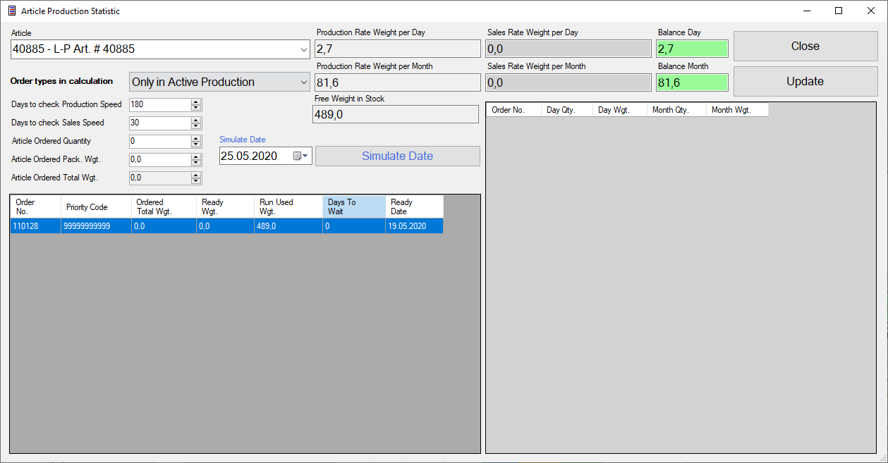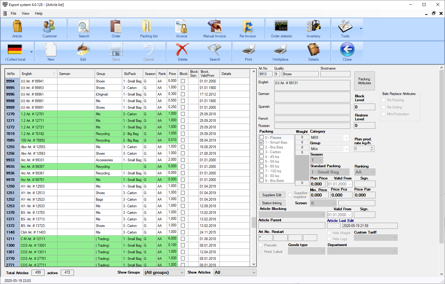 1. Articles and article attributes editing – main panel to manage finished goods list of facility.