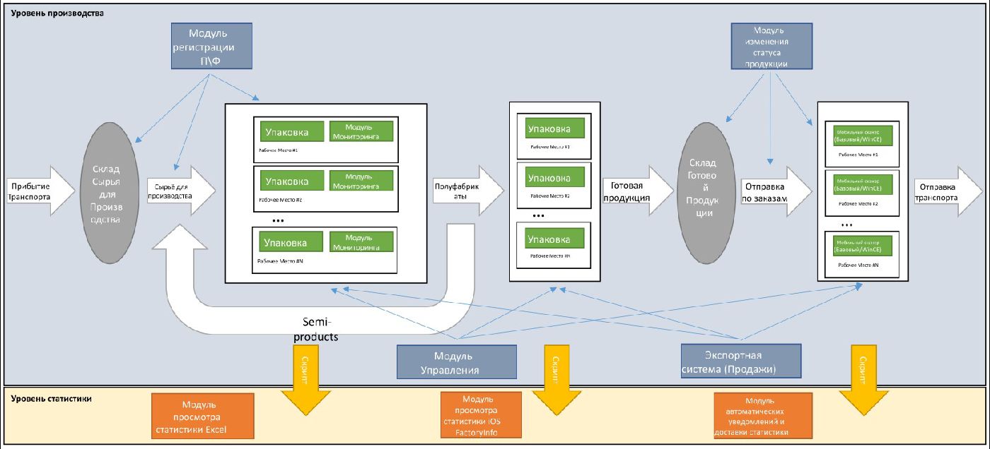 Система позволяет автоматизировать учет и контроль технологического процесса с момента формирования объема производства до маркировки и отгрузки выпускаемой продукции на малых и средних предприятиях легкой и пищевой промышленности.
