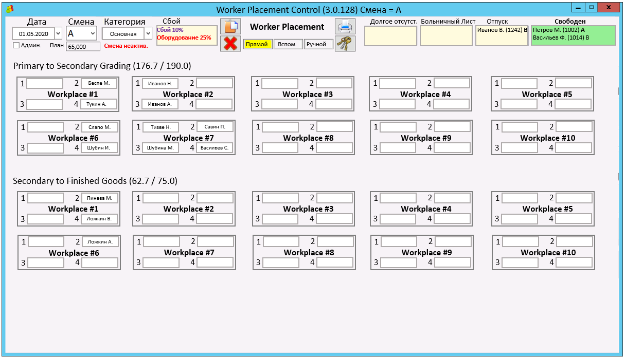 Этот модуль позволяет отображать и регистрировать работу одного рабочего места.